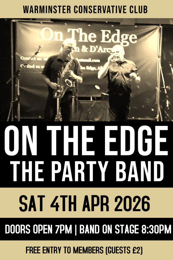 On Saturday 4th April we welcome a new duo to the Club, On The Edge. Let Andy & Pat take you on a musical mystery tour, through the decades. Free entry to members (guests £2).